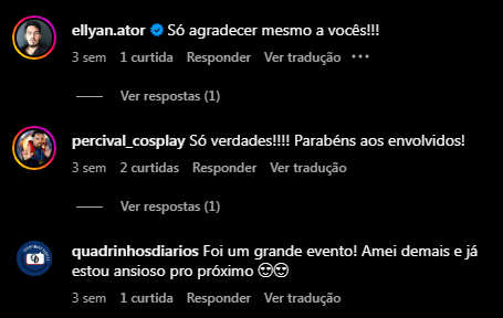 15:00–15:30 Interação – Ator Cosplay